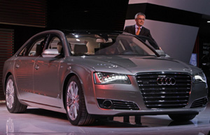 A new Audi A8 L W12 Quattro car is displayed during its world premiere ceremony at the Beijing Auto Show in Beijing April 23, 2010.