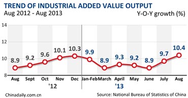 China's industrial production gained traction in August with its value-added output expanding at its fastest pace in 17 months, according to official data released Tuesday.