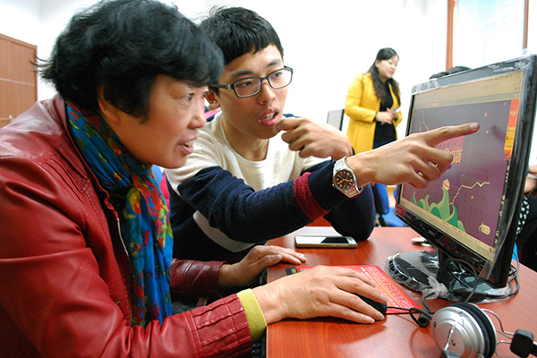 Two customers from Zhenjiang, Jiangsu province, make online purchases on Tuesday, ahead of the shopping festival on Nov 11. [Photo/China Daily]