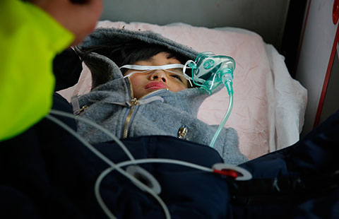 A machinist checks a bullet train stationed in Chongqing, Feb 17, 2016. The train is a substitution that remains on standby for the running bullet trains. As crew members work in the substitution, they are being asked to be on call during work hours. Machinists, stewards, and cleaners inspect the train every two-hour. [Photo/CFP]