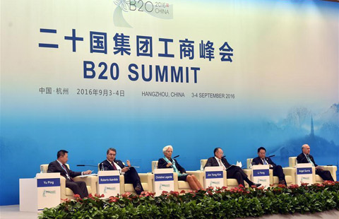Business 20 (B20) summit starts in Hangzhou, capital of East China's Zhejiang province, Sept 3, 2016.