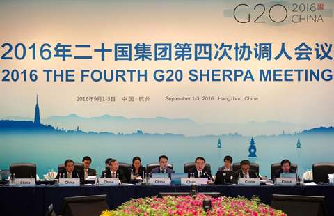 2016 The Fourth G20 Sherpa Meeting is held in Hangzhou, capital of East China's Zhejiang province, September 1, 2016.