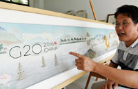 Ye, a local intangible cultural heritage inheritor, made the 3.08-meter-long, 0.56-meter-wide silk scroll with his wife and daughter to greet the G20 summit in Hangzhou.