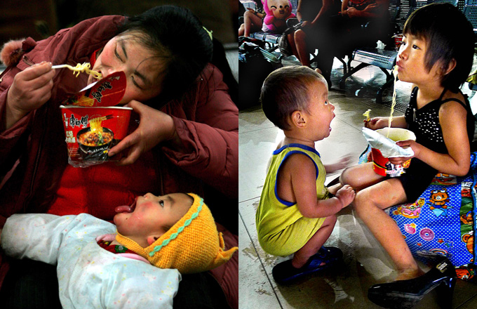 Airbnb contest winners Wu Hao (R) and Tang Di of China pose before spending a night among sharks in an underwater structure installed in the Aquarium of Paris, April 13, 2016. Airbnb and the Aquarium of Paris offer contest winners a night underwater sleeping with sharks and create a research platform for "misunderstood" shark species. [Photo/Agencies] |
