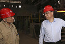Two men chat beside a logo of Alibaba at its headquarters on the outskirts of Hangzhou, Zhejiang province. [Photo/Agencies] |