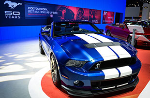 Ford Mustang Shelby GT 500 Convertible, GT premium are displayed during the media preview at the New York International Auto Show on March 27, 2013.