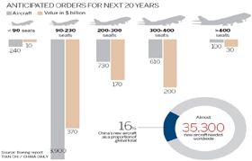 China's civil aviation fleet will triple to 6,450 aircraft over the next two decades, and Chinese airlines will grow faster in the international market.