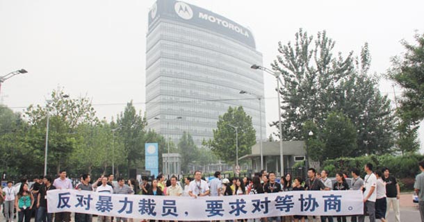 Motorola employees in Nanjing and Beijing have protested against the decision by its owner Google on Monday to reduce the workforce by 20 percent.