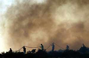 Greek authorities battled several wildfires burning near Athens and southern Greece on Saturday, on the eve of critical general elections.