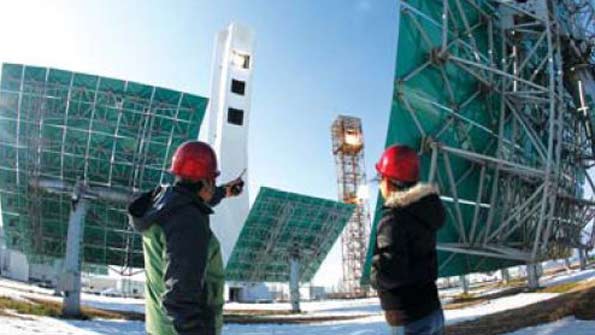 The first megawatt-level tower-type solar-thermal power station in Asia has been built in northwest Beijing, chief of the program said on Monday.
