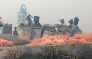 Work began in Shijiazhuang, Hebei province, on Monday on the demolition of another 17 cement factories, two months after the first batch of demolitions to improve air quality.