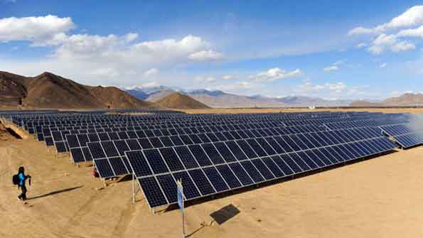 Solar panels are set in Xigaze in the Tibet autonomous region, March 30, 2011.