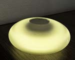 The handcrafted oil lamps incorporate a classic incandescent light bulb in the design. The handmade base for the Recycled Light Bulb Oil Lamp is created from a solid wood half dome.
