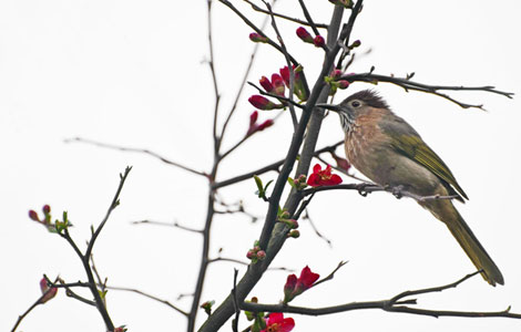 Rain and snow hit Beijing Tuesday, bringing a winter scene to the city in early spring, March 20, 2013.