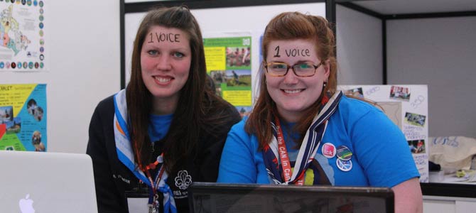 Fifteen delegates of the World Association of Girl Guides and Girl Scouts gather from 12 countries in Cancun to voice their concerns at the United Nations Climate Change Conference in Cancun, Mexico.