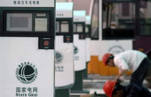 Workers adjust rechargers at an electric car recharging station on June 1 in Wuhu in Anhui province. The recharging station, which opened on June 1, is 4,800 square meters in size. It is equipped with 10 alternating current rechargers and 10 direct current rechargers.