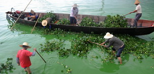 Water hyacinth is being planted in Yunnan province's Dianchi Lake in a bid to tackle pollution caused by industrial and human waste.