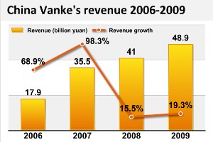 China Vanke Co, the country's biggest property developer by market value, said on Monday its 2009 profit rose 32 percent to 5.33 billion yuan ($776 million), thanks to soaring real estate sales and prices last year.