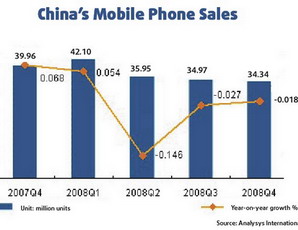 Mobile phone shipments in China declined 1.8 percent in the fourth quarter of last year, according to a report from research house Analysys International.