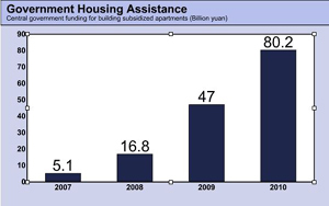 Construction of government-subsidized apartments accelerated in 2010, as part of a major effort to curb soaring property prices and provide housing for low-income earners.