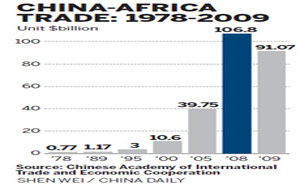 China-Africa trade is expected to bounce back to "pre-crisis levels" and is on track to hit a record high of more than $110 billion this year, the Ministry of Commerce said.