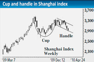 Chart patterns sometimes fail and when they do it is important to adjust analysis to recognize the new situation. The long term cup and handle pattern in the Shanghai Index signaled failure in the last week.