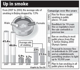An expert panel advocating a ban on smoking in public places has called on authorities in Beijing to double the 5,000-yuan fine.