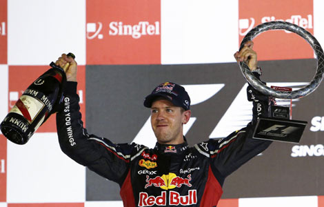 German driver Sebastian Vettel of Red Bull won the Formula One Singapore Grand Prix on Sunday evening, narrowing his gap against driver championship front-runner Fernando Alonso of Ferrari.
