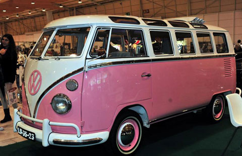 Models are pictured next to a ABT tuned up Volkswagen Golf car the 84th Geneva International Motor Show, in Geneva, Switzerland on March 4, 2014.