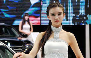 Models are pictured on March 23, 2014 at the Hainan International Auto Show in Haikou city, South China's Hainan province.