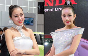 Carmakers' receptionists are pictured at the on-going 2013 Guangzhou auto show.
