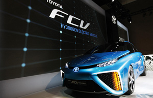 Toyota unveiled a hydrogen-powered "Car of the Future" that emits only water vapor, at the 2014 International Consumer Electronics Show.