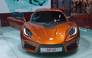 A Detroit Electric's fully electric car SP:01 is pictured on April 20 at Shanghai International Automobile Industry Exhibition 2013.