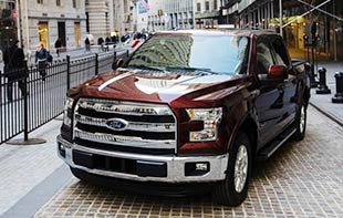 2015 Ford F-150 pickup truck displayed in auto show