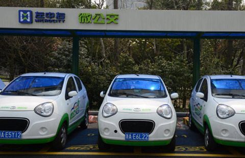 Electric cars, used as "mini buses" in Hangzhou city, East China's Zhejiang province. The electric cars can travel about 80 kilometers after one charge.