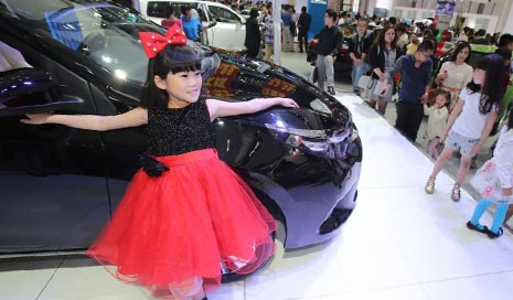 Child models are pictured at Taiyuan International Auto Show in Taiyuan city, North China's Shanxi province, on May 17, 2014.