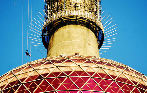 Containers are piled up at Waigaoqiao Port in the Shanghai Free Trade Zone on Friday. [Photo / Xinhua] |