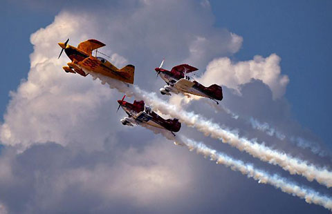 Aircrafts show aerobatics at 2015 Shenyang Faku Intl Flight convention
