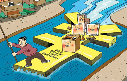 China will provide financial subsidies of 26.5 billion yuan ($4.2 billion) to stimulate the consumption of energy-saving products, mainly automobiles and household appliances, said the State Council.