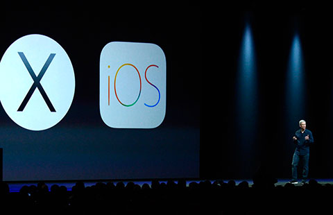 Apple CEO Tim Cook gestures during his keynote address at the Worldwide Developers Conference in San Francisco, California June 2, 2014. [Photo/Agencies] |