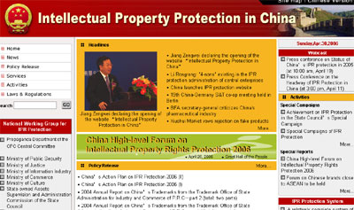 China launches IPR protection website (GOV.cn) Updated: 2006-04-30 11:39