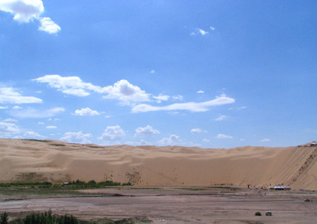 Located in the Kabuqi Desert at the southern tip of the Dalate Plain in Erdos, Inner Mongolia, the Singing Sand was given the name because the sand can sing different tunes, such as the singing of an folk song by a young lady, the galloping of horses or the sound of thunders.