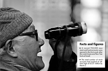 Liu Mingkang, chairman of the China Banking Regulatory Commission, said his agency had evidence of "relatively serious" misuse of bank loans for stock market speculation and would crack down on such irregularities. Liu said this on the sidelines of the annual session of the National People's Congress, confirming a long-circulated market rumor. The regulator issued a directive in January, reminding banks and financial institutions of the hazards of their association with securities brokerages and ordering them to investigate the problem of misuse of banks loans. China's stock market, which reversed its five-year slump and gained more than 130 percent last year, is still going strong this year. The climbing index has lured a growing number of investors into the market. A record 700,000 new stock and fund accounts were opened in the first week after the week-long Lunar New Year festival break, according to figures from the China Securities Depository and Clearing Corporation Limited. The total number of stock accounts had reached an all-time high of 83.57 million by March 2, it said. But at the same time, many individuals and institutions have turned to bank loans to invest in the stock market. "The number of consumer credit and other credit with no specific stated purpose has increased dramatically and we are scrutinizing the problem," said Fan Wenzhong, deputy director of CBRC's Research Bureau. Although specific figures are not available, many analysts and market