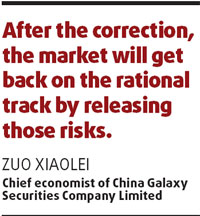 bubbles," said Cheng. After the correction, the market will "get back on the rational track by releasing those risks", said Zuo Xiaolei, chief economist of China Galaxy Securities Company Limited. "We definitely have bubbles in the market, but those bubbles are not big enough to destroy the capital market," said Zuo. Analysts believe the sharp correction would push nervous retail investors into either blue-chip stocks or the fund market. "Blue chips will remain glamorous after the correction since they are not the target of government cooling efforts, while funds are obviously safer than stocks," said Cheng of CITIC. (For more biz stories, please visit Industry Updates) |