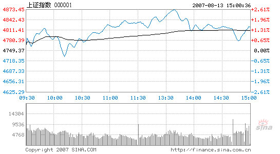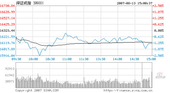 Updated: 2007-08-13 16:35 The stock market handled the release of July's consumer price index (CPI) results this morning smoothly, as the 10-year high 5.6 percent growth in CPI was apparently anticipated. With a 66-point plunge in response to the announcement, the Shanghai Composite Index soon came back to a new record-high close. Total turnover of stocks in the major indices was 224.9 billion yuan, higher than last Friday. Shanghai Composite Index ![]() The benchmark Shanghai index opened higher at 4,768.62 and started to climb after a short dive. When the National Bureau of Statistics announced the July CPI figure, it slid quickly to its lowest, 4,728.89. But there it made a turnaround. In the afternoon, the index almost broke 4,900, hitting 4,872.55, the highest of the day. With a few setbacks, it finally ended the day at 4,820.06, up 70.69 points or 1.49 percent. Of the A shares listed in Shanghai, 338 went up today while 430 closed down and 74 finished flat. Henan Lianhua Gourmet Powder, rising 10.09 percent to 5.89 yuan, topped the gainers' list to lead another 14 stocks with 10 percent growth on the first places. Beijing Vantone Pioneer Real Estate, however, dropped another 10 percent as the biggest loser, on the second day after last Friday. Bank of China, with the largest trading volume, was up 8.61 percent. Sinopec, with the largest transaction value, added 0.5 yuan to its share price. Shenzhen Component Index ![]() The Shenzhen Component Index, without many index-driven heavyweight stocks, performed worse than its Shanghai counterpart. Opening lower from 16,215.57, it went through the day within a range of 15,913.56 to 16,281.29, both lower than Friday's closing level. The index closed at 16,116.11, down 207.33 points or 1.27 percent. Of the A shares, 252 went up, 299 closed down, and 77 ended unchanged. New shares Beijing Bdstart Navigation, GRG Banking Equipment, and Beijing Shiji Information Technology went up 381 percent, 364 percent, and 287 percent respectively, on top of the growth list. TCL, with the largest trading volume, rose 4.36 percent while China Vanke, with the largest transaction value, slipped 1.87 percent. Stocks in the timber, paper, and hydropower sectors performed better than the others. Both closed-end mutual funds and B shares were down. Of the 109 B shares, only 21 went up and 7 ended flat. |