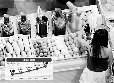 The scale of China's retail sales has expanded quickly, with an average annual growth rate of 12.2 percent in 2003-06.