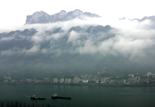 Cargo ships sail along the Yangtze River at the Three Gorges area in Yichang, Central China's Hubei Province February 28, 2007. [Xinhua]