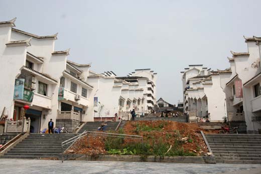 The photo taken on April 24, 2007 shows a new city resembling the old Dachang Town under construction on a hill near the end of Three Little Gorges in Wushan County, Southwest China's Chongqing Municipality.[chinadaily.com.cn]