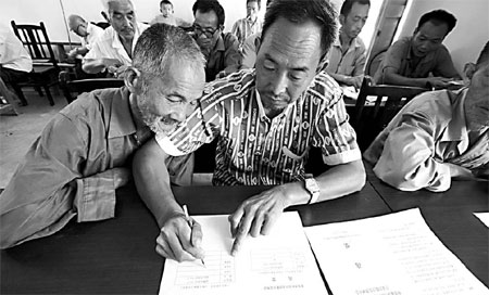| Farmers fill out their ballots on September 27 to determine the new Party secretary of Fuxinqiao, a village in Chongqing Municipality. Chen Shichuan |