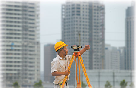 | A surveyor works on a construction site of Zhengzhou Eastern District, which will be completed between 2015 and 2020. [China Daily] |